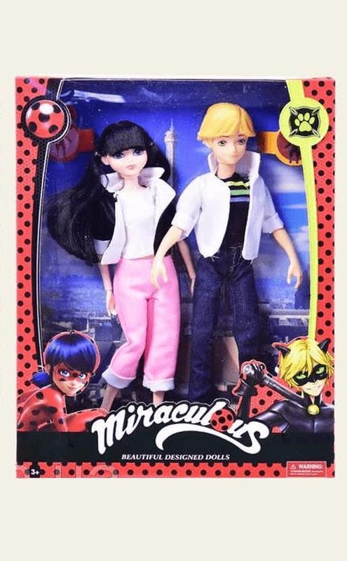 Набор состоящий из двух кукол "Леди Баг и Супер Кот" созданы по мотиву мультфильма, который рассказывает про парижских подростков: девочка - Маринетт, она же Леди Баг, когда превращается в супер героя, и мальчик - Адриан Агрест или Супер Кот в облике. Куклы шарнирные, у них гнутся руки и ноги, за счет того, что вставлены шарниры. Одежда на куклах отличного качества. Высота куклы: 30 см.