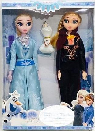 Кукла Анна и Эльза с мультфильма Холодное Сердце очень понравиться детям. Кукла имеет естественные изгибы на шарнирах. С милыми принцессами Frozen в наборе также есть и веселый друг снеговик Олаф. Размер коробки 33*23*5 см Размер кукол 30 см