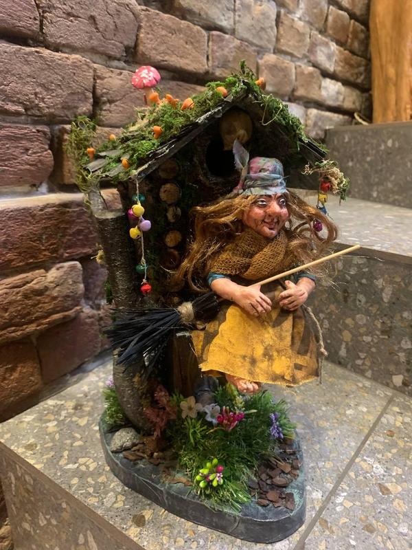 Высота-32 см Ширина-16 см Глубина-23 см Баба-Яга - мифологический персонаж, распространенный в славянском фольклоре. Прежде фигурирует в сказках, но также встречается в детских играх. Традиционным изображением является старая женщина, атрибутами которой является домик на курьих ножках и ступа. Баба Яга создана из разных материалов (керамика, текстиль, дерево и т.п.) и в разной технике. Уникальная кукла, создана полностью вручную, авторская работа.