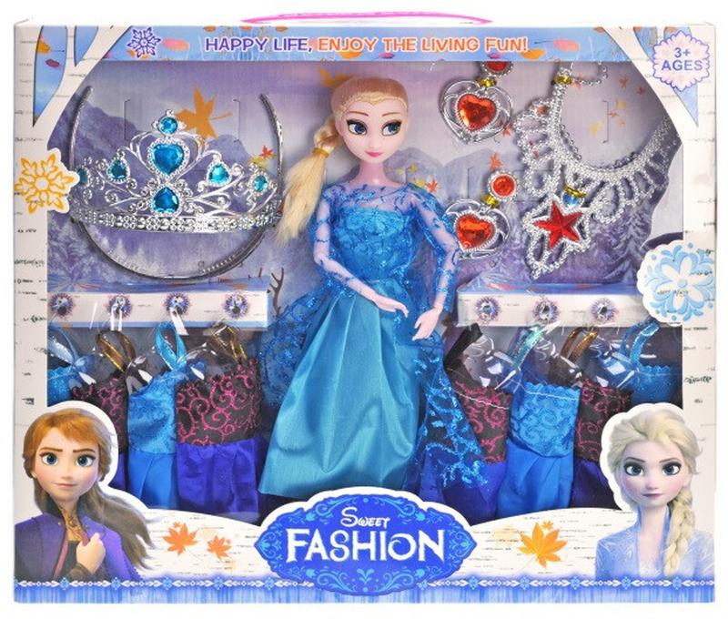 Лялька Ельза з Аксесуарами дуже сподобається дитині. У наборі гарна лялечка з короною, намисто та великою кількістю суконь. Розмір коробки 33*6*38 см