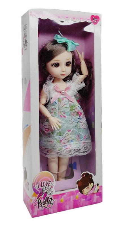 Симпатичная куколка с длинными бело-розовыми волосами и карими, глазами. Куколка на шарнирах, что придает игре с ней реалистичности. Размер: 31 см