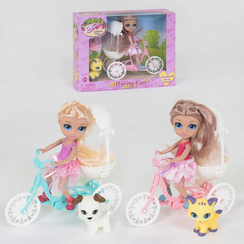 Кукла с велосипедом 57001 (60/3) 2 вида, с питомцем, в коробке