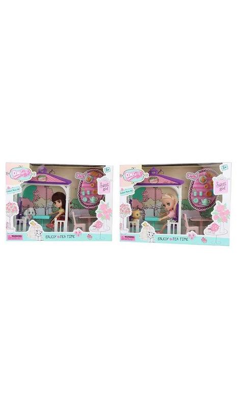 Куколка в беседке с питомцем, беседка, столик, питомец, аксессуары