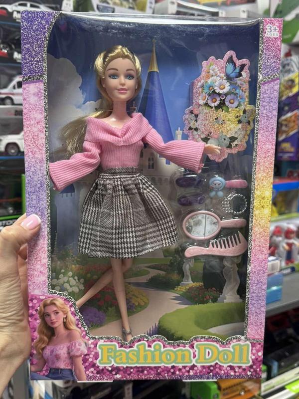 Кукла Fashion Doll - милая подруга для теплых и увлекательных детских игр. Она имеет нежное лицо, шелковистые волосы и ласковый взгляд, что сразу привлекает внимание. Вместе с ней ребенок сможет придумывать свои истории, развивать воображение и ощущение красоты. Такая кукла станет любимой героиней игры и принесет много приятных моментов. Особенности: - очаровательная кукла; - высота куклы: 30 см; - детализированные черты лица; - длинные прошитые волосы; - шарнирные соединения суставов; - голова и руки - резина; - тело и ноги - пластик; - съемная одежда и обувь; - дополнительная сменная пара обуви; - дополнительные аксессуары для игры: украшение, зеркальце, расческа, зажим для волос.