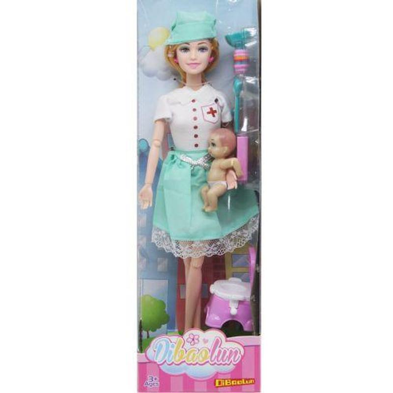 Игровой набор с куклой в красивом костюме медсестры, ребенком и различными аксессуарами для ухода за ним (поилка, тарелочка, ложка, слюнявчик, погремушка и другое). В комплекте также есть горшок с подвижной крышкой. Высота куклы - 28 см. Размер ребенка: 6х3 см.__ Бренд: MIC Упаковка: Коробка Цвет: Мятный Вес в упаковке: 190 г Габариты в упаковке: 7 x 10 x 32.5 см Габариты без упаковки: 4 x 28 x 6 см Cтрана производитель: Китай Материал: Комбинированный Комплектация: Кукла, ребенок, горшок, поилка, тарелочка, ложка, слюнявчик, погремушка