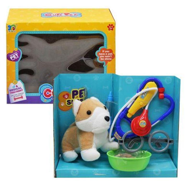 Уценка. Набор "Доктор" с мягкой собачкой (бежевая) (повреждена упаковка) Набор "Доктор" с мягкой собачкой. С данным набором ребенок сможет почувствовать себя самым настоящим ветеринаром . Кроме мягкой, плюшевой собачки в комлекте есть: мисочка с кормом, шприц, стетоскоп, градусник и очки. Размер песика - 12 х 14 х 9 см. _ Бренд: Jia Ning Da Упаковка: Коробка Цвет: Разноцвет Вес в упаковке: 340 г Габариты в упаковке: 22 x 28 x 13.5 см Cтрана производитель: Китай Материал: Комбинированный Комплектация: Собачка, мисочка с кормом, шприц, стетоскоп, градусник и очки