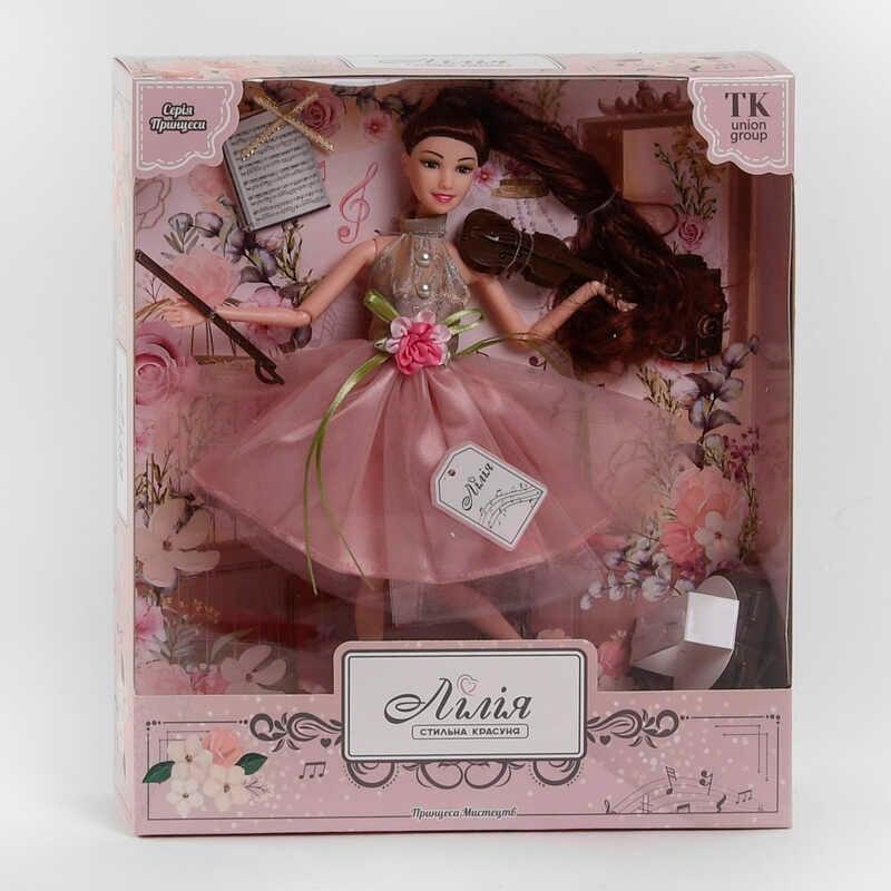Кукла Лилия ТК - 12429 "Художественная Принцесса" Откройте мир искусства вместе с Куклой Лилией ТК - 12429 от "TK Union Group"! Эта утончённая красавица, напоминающая настоящий шедевр, готова принять вас в своем храме шедевров и погрузить в мир прекрасного и великого. Описание внешности и наряда Кукла имеет изящные черты лица, большие выразительные глаза и очаровательные красные губки, которые добавляют ей неповторимого шарма. Стильная принцесса одета в жаккардовое платье с широким атласным поясом, украшенным розочкой и жемчужными нитями. Верх платья отделан фатином, создающим американскую пройму. На ее ножках - элегантные туфельки, дополняющие образ. Комплектация и особенности - Скрипка - Смычок - Чехол для скрипки - Ноты Эта пластиковая красавица имеет 11 точек артикуляции, позволяющие ей принимать разные позы и двигаться с грацией. Ее главным атрибутом является скрипка, подчеркивающая ее художественную натуру. Рост куклы – 30 см.