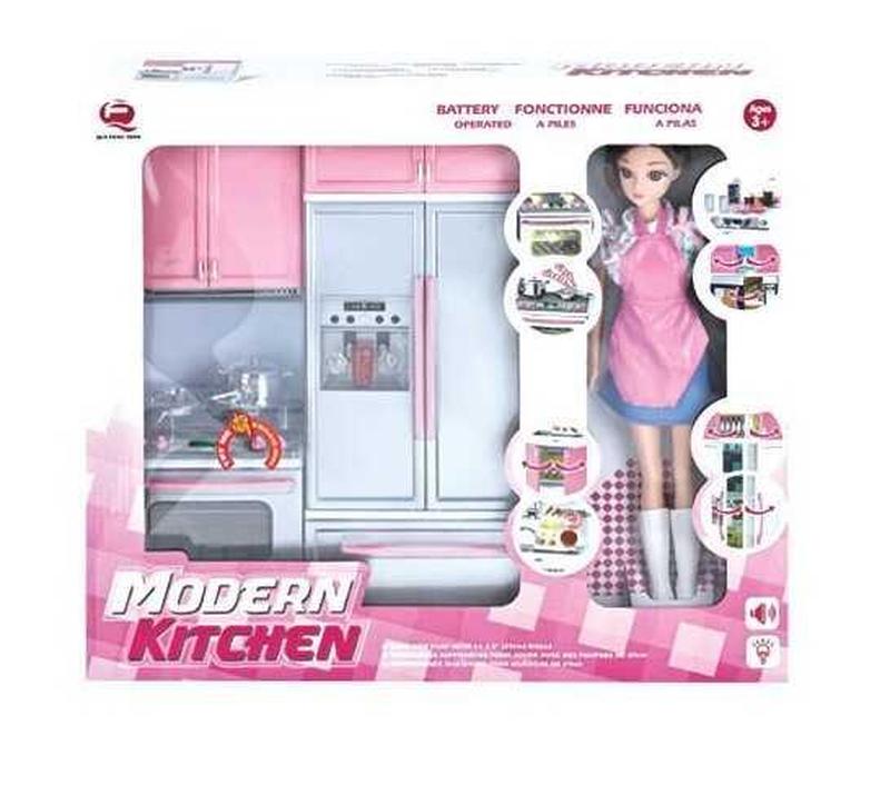 Познайомтеся з нашою чарівною лялькою-кулінаром, яка обожнює готувати смачні страви для своєї родини та друзів! Її кухня завжди наповнена затишком, чистотою і приємними ароматами, адже вона завжди готує щось смачненьке! Цей чудовий ігровий набір стане справжнім відкриттям для вашої дитини, адже він не лише включає в себе гарну ляльку-подружку, але й надає безмежні можливості для веселих ігор. У комплект входить стильний кухонний гарнітур, виконаний з високим ступенем деталізації та реалізму. Меблі з рухливими елементами роблять гру ще цікавішою! А щоб гра була ще більш захоплюючою, наш комплект оснащений світловими та звуковими ефектами, які працюють на батарейках, що входять до набору. Окрім ляльки, ви також отримаєте безліч кухонних аксесуарів, які доповнять ігровий процес. Основні характеристики: - Включає ляльковий кухонний гарнітур; - Меблі з рухливими елементами; - Світлові та звукові ефекти, що працюють від батарейок; - Кухонні аксесуари в комплекті; - В комплекті з лялькою; - Висота ляльки: 30 см; - Тіло ляльки з пластику, голова та руки - гумові; - Милий наряд та знімне взуття.