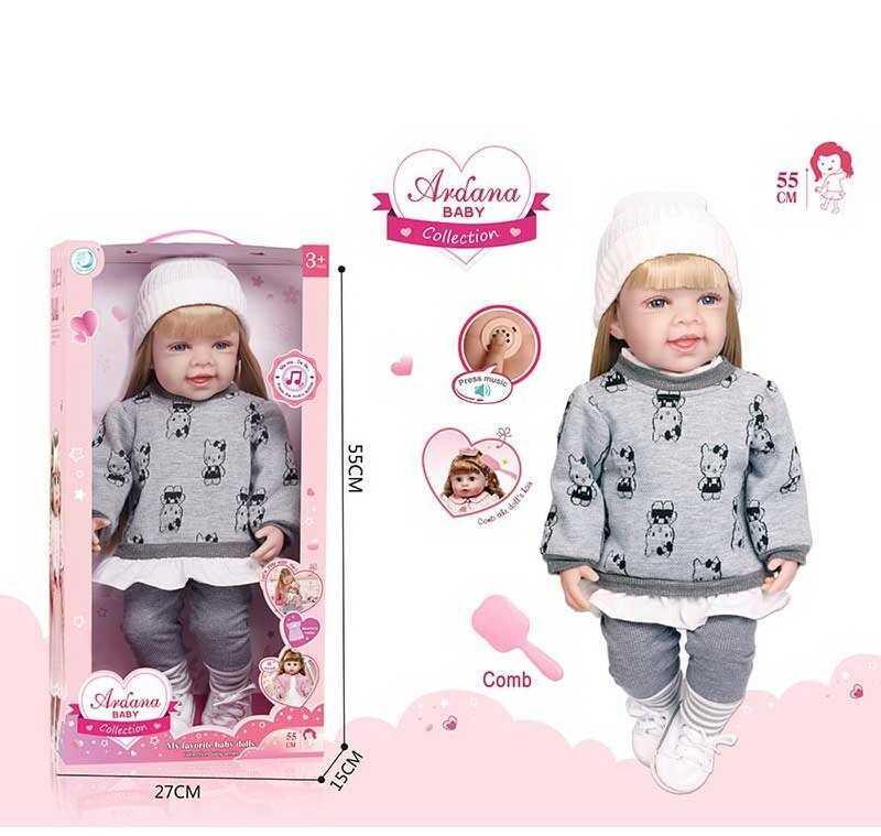 Игрушка, приносящая радость ребенку Эта милая кукла изготовлена из мягкой резины, имеет прошитые шелковистые волосы и подвижные конечности, что позволяет менять её позы во время игры. Кукла реагирует звуками на изменение положения, делая игру более интересной и интерактивной. Основные характеристики - Изготовлена из мягкой резины; - Реалистичный детализированный дизайн; - Подвижные полусогнутые руки и ноги для удобного позиционирования; - Прошитые шелковистые волосы для расчесывания; - Функциональная с интерактивным звуковым модулем на спинке; - Работает на батарейках, входящих в комплект; - Стильная съёмная одежда; - В комплекте щётка для волос и обувь; - Высота куклы: 52 см.