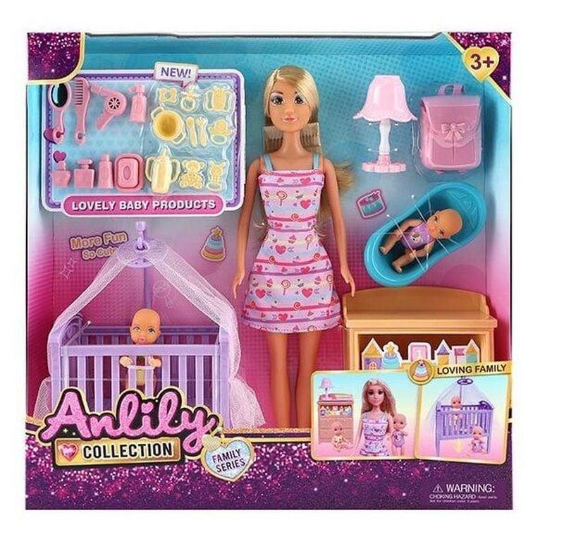 Эта милая кукла с младенцами превратит игру ребенка в увлекательную семейную историю! Здесь есть все необходимое для заботы о малыше – кроватка с балдахином, ванночка, аксессуары для купания и кормления. Ребенок сможет помогать куколке ухаживать за малышом, придумывая хорошие и теплые сюжеты о маминой любви и заботе. Особенности: - высота: 30 см; - детализированные черты лица; - голова и руки – резина; - тело и ноги – пластик; - съемная одежда и обувь; - 2 пупсика в комплекте; - кроватка с балдахином; - ванночка для купания пупсиков; - комод для хранения вещей; - настольная лампа; - рюкзак; - аксессуары по уходу за пупсиками: игрушки, посуда, пустышка; - аксессуары по уходу для куклы - мамы: фен, расческа, зеркальце, гигиенические средства. * Характеристики и комплектация товара могут изменяться производителем без уведомления.