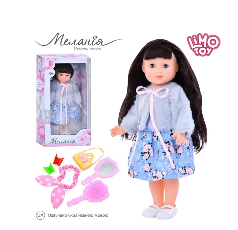 Лялька Меланія 37 см Виробник Limo Toy Музика(укр), пісні, аксесуари. На батарейці (таблетка). Волосся прошите по всій голові, руки ноги рухливі, очі закриваються, може сидіти. Кількість обмежена. Уточнюйте перед замовленням.