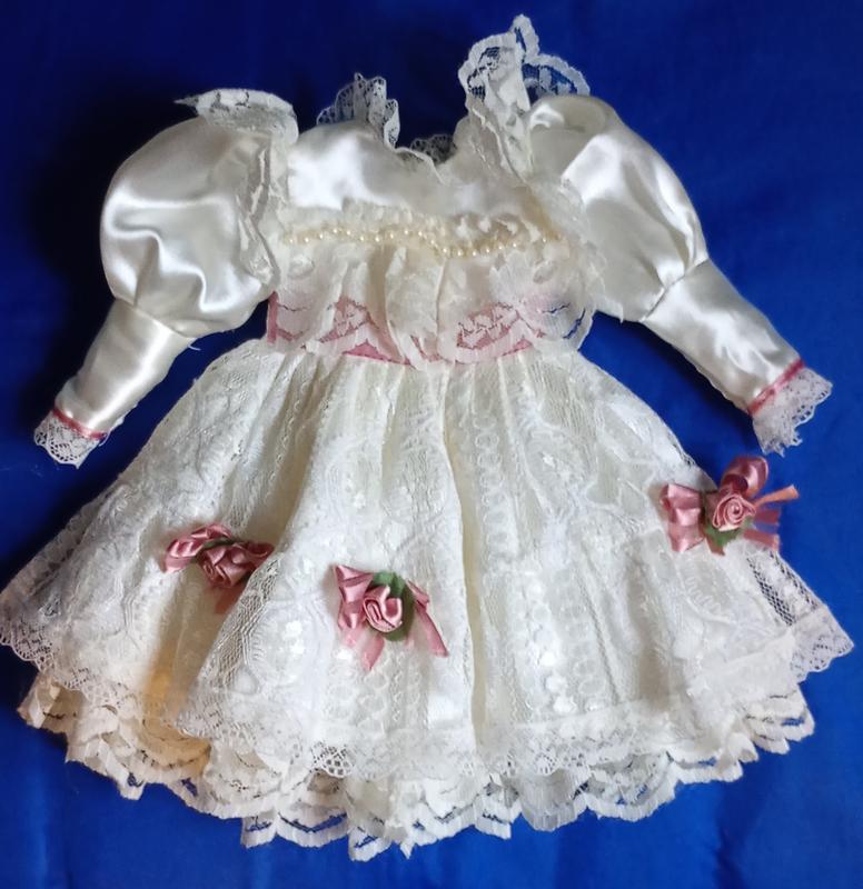 Платье для фарфоровой куклы (длина платья 26см на куклу 40-41см), цвета слоновой кости, застежки - крепкие липучки, состояние - красиво.