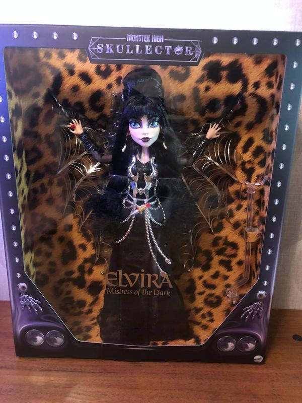 Кукла Monster High Эльвира, Повелительница тьмы, коллекционная, в черном платье из искусственной кожи с серебристым плащом «летучая мышь» и аксессуарами премиум-класса новая оригинал, в коробке