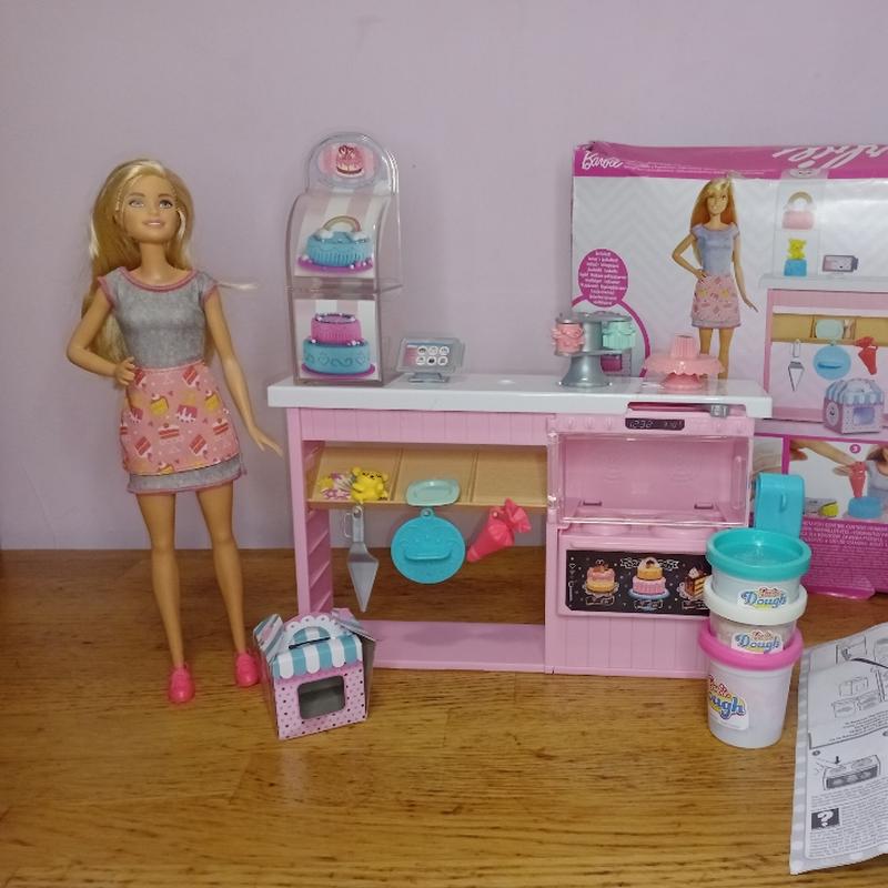 Игровой набор Barbie Cake Decorating дает возможность девочке почувствовать себя кондитером! В пекарне есть три игровых зоны, где дети могут "спекты", украсить и показать свои пирожные, а также места для хранения более 10 элементов набора. Девочки могут помочь кукле-пекарю Barbie сделать одно - или двухслойное пирожное, которое "вырастает" в духовке, украсить сбоку вращающимися трафаретами, покрыть торты уникальными топингами, продать на кассе или разрезать и подать на тарелке. Легко работать маленьким ручкам и творческому воображению. Дети полюбят безграничные возможности для самовыражения и рассказов историй! Набор Barbie Cake Decorating включает в себя куклу-пекаря Barbie с модными аксессуарами, кухню с духовкой для выпечки тортов и витриной, инструмент для украшения тортов с тремя трафаретами, три топпера, тестообразователя, кассу, лопатку для торта, место установка. Все в идеальном состоянии. Для «выпечки» тортов необходимо тесто пластилин в комплекте нет.И не хватает пару деталей тому подобное цена.Колобока есть но в плохом состоянии.