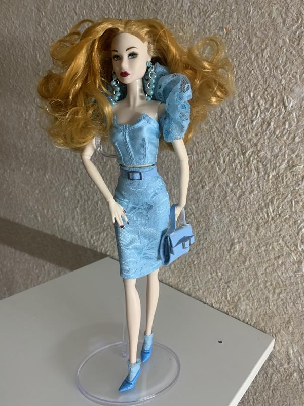 Вбрання: спідниця на липучці, топ корсет на липучці, шалька рукава,шкарпетки, трусики, пояс ,сережки та сумочка, Одяг зручно одягати.