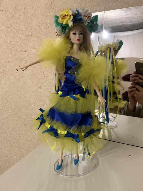 Сучасне вбрання на тему нашого прапору: Сукня, спідниця на кнопках та вінок. Все зручно до переодягання.
