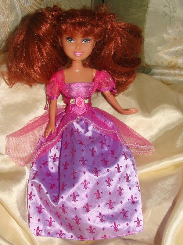 Кукла, цвет волос русый, платье нарядное фиолетовое, высота куклы 26 см. Производитель фабричный Китай. Без туфельок. Ручки и ножки не гнутся.