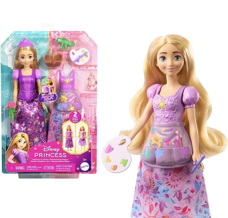 Лялька Рапунцель з можливістю перевтілення у різні стилі. Дозволяє створювати нові зачіски та комбінувати образи принцеси. Особливості: • Два варіанти нарядів: фіолетова сукня та змінна спідниця з корсетом • Довге волосся для заплітання та прикрашання короною • Додаткові аксесуари: фартух, пензлик, палітра фарб, кошик з квітами та друг Рапунцель • Висота ляльки: близько 30 см • Матеріал: безпечний пластик, волосся із синтетики • Вік: від 3 років Підходить для сюжетно-рольових ігор та розвитку фантазії.