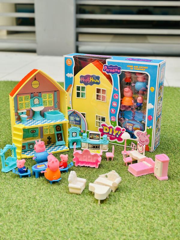 2457 Большой двухэтажный домик открывает дверь в мир веселых семейных приключений! Внутри – мебель, фигурки героев и аксессуары для сюжетных игр. Благодаря красочному дизайну и множеству деталей ребенок сможет придумывать собственные сцены из жизни любимой семьи. Набор способствует развитию фантазии, мелкой моторики и эмоционального интеллекта. Особенности: - размер домика: 18х5,5х19 см; - в набор добавлено 4 фигурки известных персонажей; - яркий детализированный дизайн игрушек; - в комплект включены аксессуары в виде столика, стульев и мебели; - у каждого героя - резиновая голова, пластиковое тело; - фигурки имеют подвижные ручки и ножки; - домик выполнен из качественного и безопасного пластика; - способствует развитию фантазии, мелкой моторики и эмоционального интеллекта.