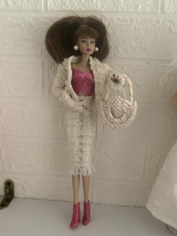 Спідниця та жакет ! Шикарна тканина! До вбрання іде топ , чобітки та сумочка плюс сережки ! Одяг зручний до переодягання. На фото всі деталі створеного одягу!