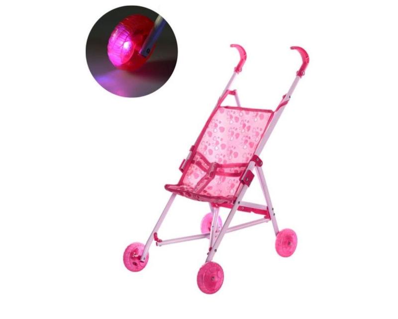 Коляска для куклы M 0350 U/R со светящимися колесами.Коляска для катания кукол. Отличается легким весом и привлекательным дизайном. Складывается в виде компактной трости для транспортировки. Используется для сюжетно-ролевой игры «дочки-матери». Развивает чувство ответственности у девочки с 3-х лет.Характеристики: - конструкция коляски оборудована светящимися колесами; - практичная, яркая ткань обивки; - коляска оснащена прочным металлическим каркасом; - имеются ремни безопасности для куклы; - удобные эргономичные ручки управления. Размер коляски: 53x49x27 см.