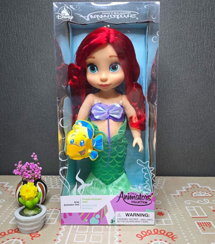 Лялька русалочка Аріель із колекції Disney Animators Collection. У комплект входить іграшка друг Флаундер. Висота ляльки: близько 40 см. Лялька в коробці . Оригінал Disney. Disney Animators Collection Ariel Doll – The Little Mermaid.