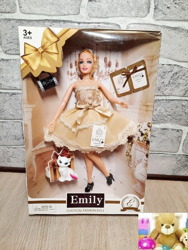 Лялька «Emily» - це прототип цієї сучасної принцеси. Адже вона володіє бездоганною зовнішністю і білосніжною чарівною посмішкою. У ляльки довге розкішне волосся, які можна розчісувати і моделювати різні зачіски. Гарне плаття в вінтажному стилі, оздоблена мереживом. Також в набір входить сумочка для ляльки і фігурку кішечки. Лялька призначена для сюжетно-рольових ігор, сприяє розвитку уяви, пізнавального мислення і моторики. Розмір уп 22х7х33 див. мишк