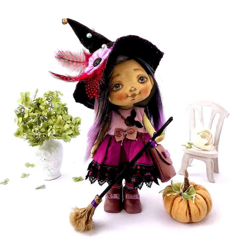 Кукла текстильная ручной работы. кукла из ткани с темными волосами. ведьмочка.