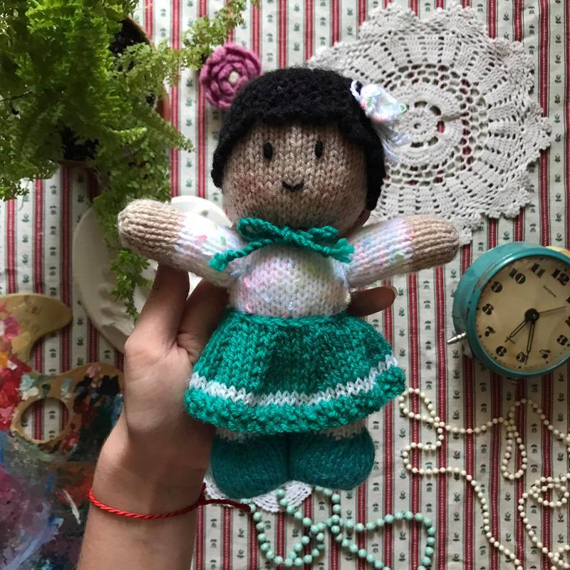 Вязаная кукла пупс ручная работа в стиле ретро винтаж