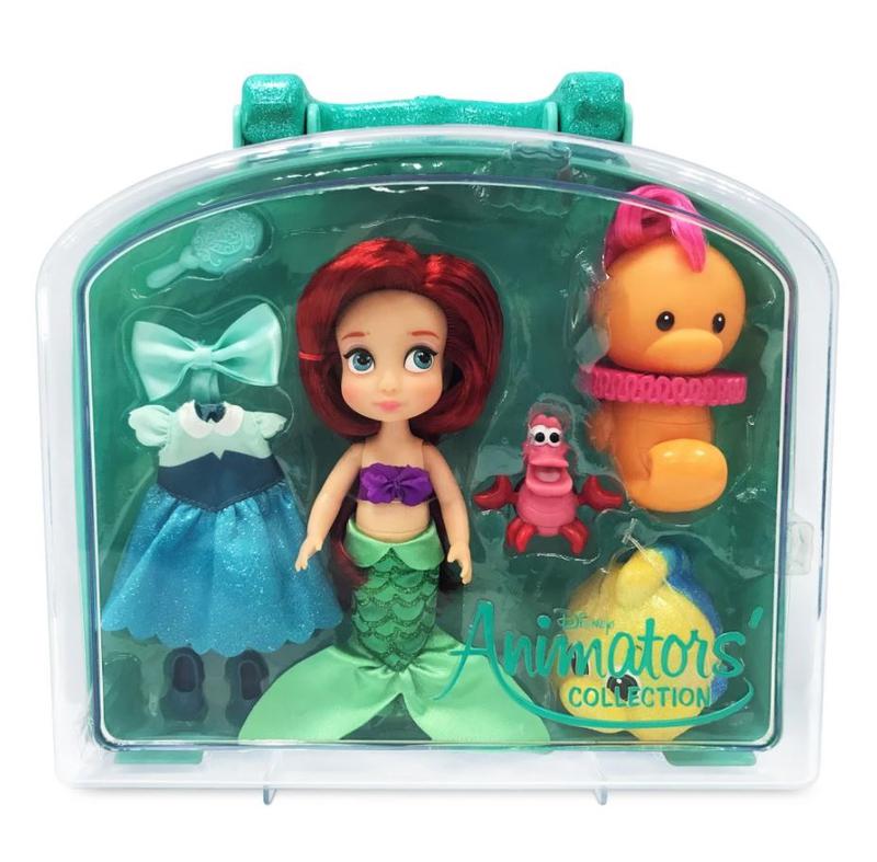 Приголомшливий ігровий набір з принцесою Аріель в дитинстві! Висота ляльки міні Дісней аніматор Аріель в дитинстві - 12.5 див. В наборі: - лялька русалочка Аріель в дитинстві, - краб Себастьян, - рибка Флаундер усипана блискітками, - морський коник з прошитими рожевими волоссям, - додатковий наряд, - балетки, - бант, - гребінець для ляльки, - валізка для зберігання Оригінал Disney