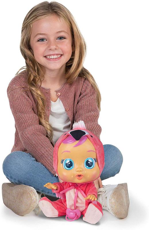 Интерактивный пупс Cry Babies Плакса Фламинго Фенси от IMC Toys Оригинал 97056 Познакомьтесь с плачущей малышкой, она любит наряжаться! Интерактивная Кукла IMC Cry Babies Плакса Фламинго Фенси в костюме Фламинго влюбляет в себя с первого взгляда в большие голубые глаза. Она плачет настоящими слезами и издает реалистичные звуки ребенка, когда ты убираешь ее соску! Дайте ей сладкие объятия и положив соску в рот или осторожно положите ее, чтобы она не плакала. Если надолго оставить малышку без внимания, она заплачет. Встроенный резервуар с водой и специальные отверстия на лице дают ей возможность лить настоящие слёзы в течение 10 секунд. Благодаря звуковым эффектам общение с куклой будет взаимным и увлекательным. Играя с пупсом, дети развивают эмоциональный интеллект. Комплектация: - кукла-плакса в съёмном костюме из плюша; - соска; - подарочная коробка открытого типа. Категория развития Эмоциональное, Воображения, Умение играть Высота куклы: 31 см. Питание: 2 батарейки типа ААА идут в комплекте (функция TRYME). Разм 35 х 23 х 16 см Рекомендованный возраст: с 18-ти месяцев.
