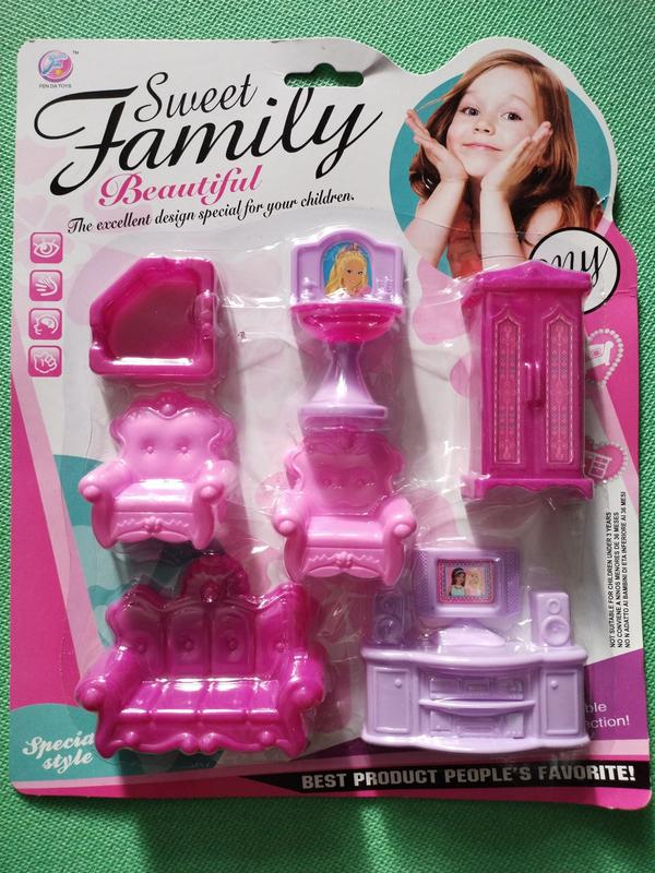 Игрушечная мебель для кукол. Материал: пластик. Цвет: розовый + сиреневый. Размер набора: 24*22см.