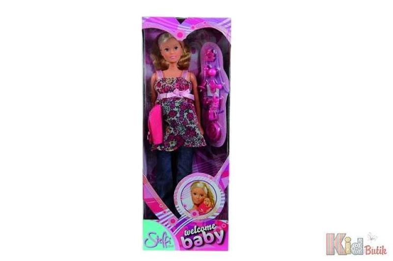 Приймаємо оплату карткою "Пакунок малюка". Беременная кукла Штеффи создана специально в помощь родителям детей, которых интересуют, откуда появляются дети. Нужно только легко нажать на живот и появится малыш. В наборе также есть: полотенце, тарелочка, ложечка и вилочка, стаканчик, пустышка, погремушки, мячик. Рост куклы 29 см, ребенока 5 см.