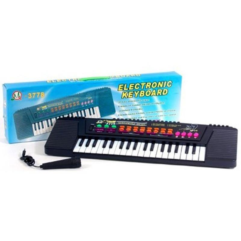 Описание Детский синтезатор с микрофоном MQ-3778 Детский синтезатор MQ-3778 с микрофоном имеет возможность регулировки громкости и следующие функции: 37 клавиш; 8 ритмов; Звучание 8-ю различными инструментами: ( пианино, орган, гитара, виолончель, саксофон, банджо, флейта, колокольчик); 4 ударных инструмента; Контроль громкости; Контроль ритма; 2 демо песни; 22 управления темпом; Микрофон; Функция записи и воспроизведения; Функция программирования клавиш. Работает от сети 220V (входит в комплект), или от батареек 4 шт.