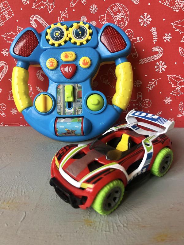 Ідеальний подарунок для маленького водія ! Як на мене , це кермо вдало придумане, так як має всі головні функції, які є в машині. Кермо у нормальному стані, позаду має маленькі потертості. Працює на батарейках. А от машинка нова ;) Обирайте і щасливої вам дороги разом із дитинкою !