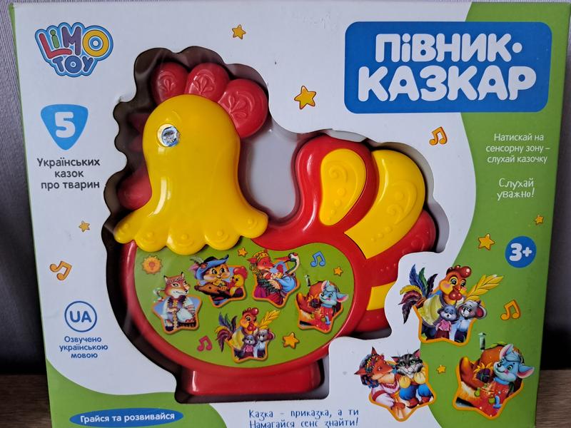Вам колись почитати дитині казки? Є вихід! Аудіоказки та аудіокниги півник зроблять це замість Вас. 5 казок про тварин українською мовою. розмір упаковки 24×20×4см півник 16см, працює від 3х батарейок