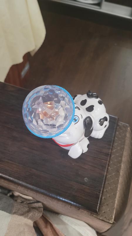 Интерактивная игрушка "Танцующая собачка" YJ388-19. Собачка с шариком на носике. Исполняет трюки с шариком : ходит, садится, крутится. Имеет звуковые эффекты, играет веселая музыка, светится яркими цветами. Работает от батареек. Батарейки в комплект не входят. Материал - пластик