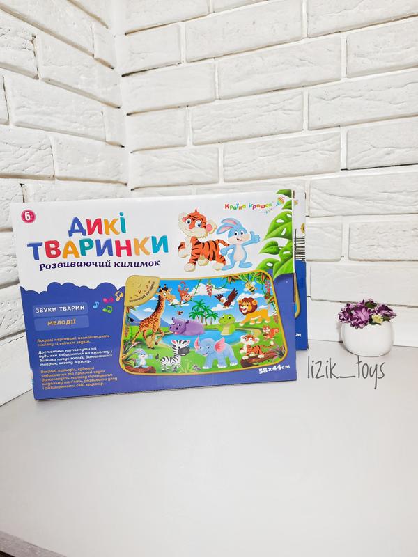 М'який музичний килимок "Домашні тварини" допоможе малюкові освоїти звуки тварин, почати знайомство з квітами, а також подарує задоволення дитині. Розмір килимка 62 * 29см Розмір коробки 35 * 4 * 25,5см дикі тварини Розмір килимка: 58*44 див. Працює від 3-х батарейок "АА" (у комплект не входять).