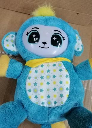 Іграшка складається в клубочок. При розкриванні говорить, співає, сміється французькою, світиться рожевим і жовтим кольорами. Працює від батарейок
