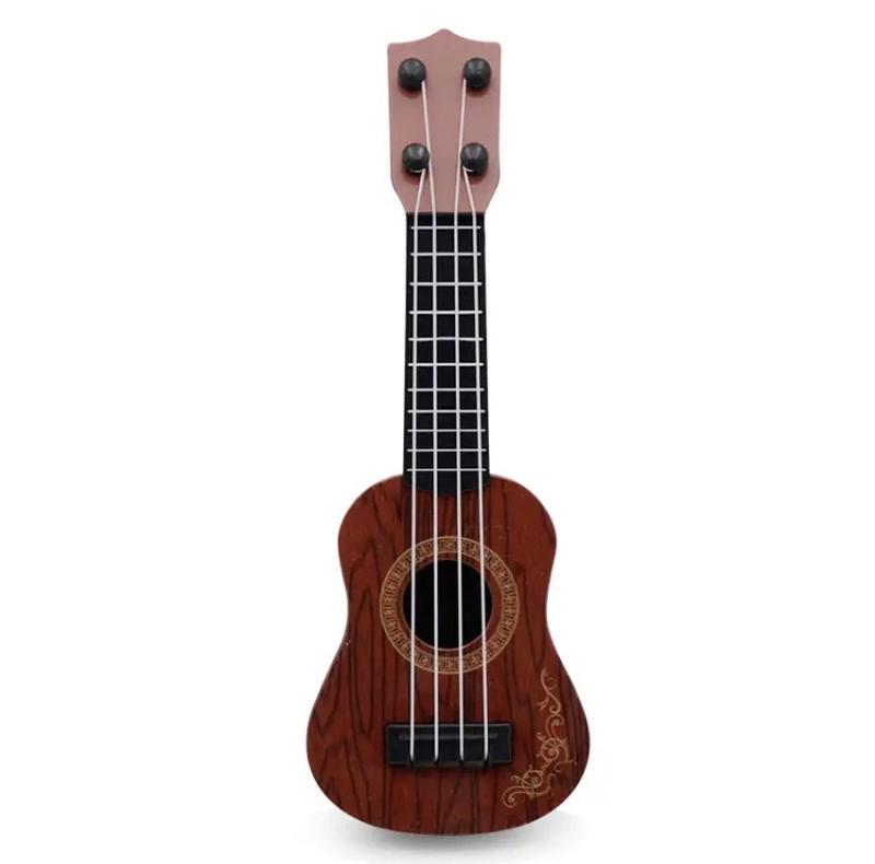 Гитара детская игрушка, темно-коричневая - длина 25см, ширина 9 см, пластик, 4 струны (лес...