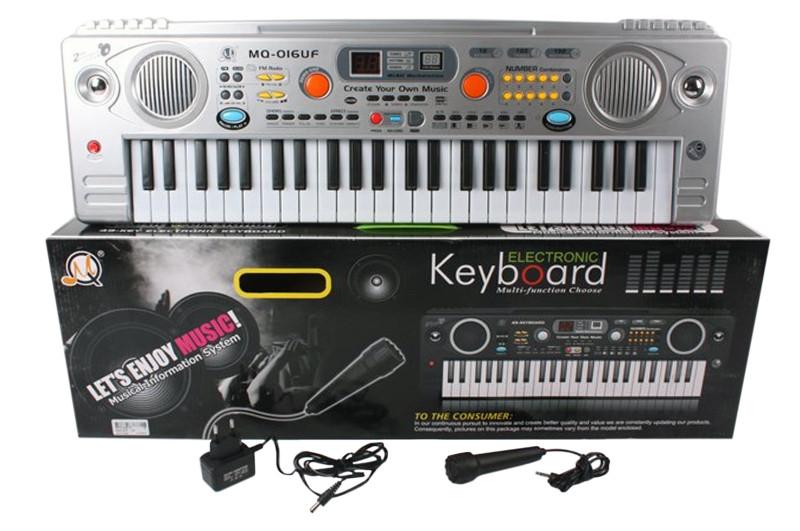 Детский синтезатор MQ-016UF - это многофункциональный музыкальный инструмент для детей возрастом от 3-х лет. Пластиковое пианино на 49 клавиш. Имеет: различные мелодии, музыкальные инструменты, кнопки записи и воспроизведения, кнопки регулировки громкости и темпа. Также в наборе есть микрофон и разъём для микрофона. В комплекте есть зарядка. Характеристики: - ### 49 клавиш; - ### звуковые эффекты; - ### запись; - ### регулирование громкости; - ### микрофон; - ### FM радио Размер игрушки 66х6х21 см. Работает на батарейках АА (в комплект не входят) и от сети. Выполнено из качественных и безопасных материалов. Коробка: 72*23*8 см Уважаемые клиенты, отправляя Вам товар, мы его пакуем самостоятельно, для того чтобы Вы не переплачивали за упаковку на почте, а платили только доставку. Это позволяет сэкономить от 50 до 150 грн в зависимости от объема посылки.
