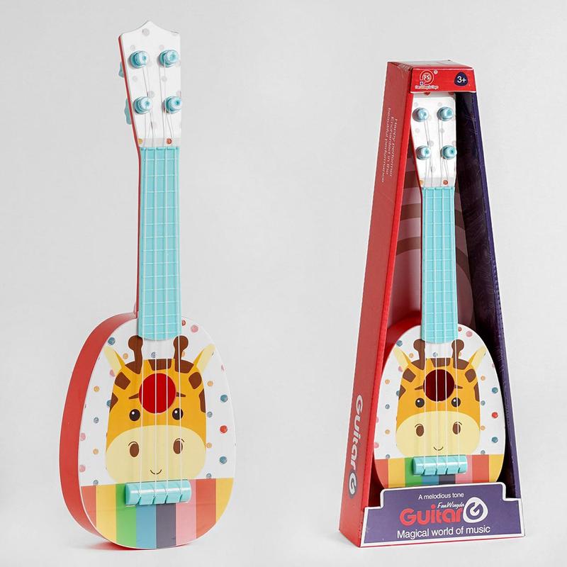 Гитара детская A-toys 898-39 Особенности: - инструмент оснащен четырьмя струнами; - игрушка прекрасно подойдет для первого знакомства с нотами и их звучанием; - есть возможность регулировки струн, чтобы звук был точнее и чище; - высококачественные струны не деформируются даже при длительной эксплуатации, к тому же они достаточно эластичны, поэтому не повредят пальцы. - гитара имеет оригинальный дизайн и украшена забавным изображением животного; - длина гитары – 36 см.