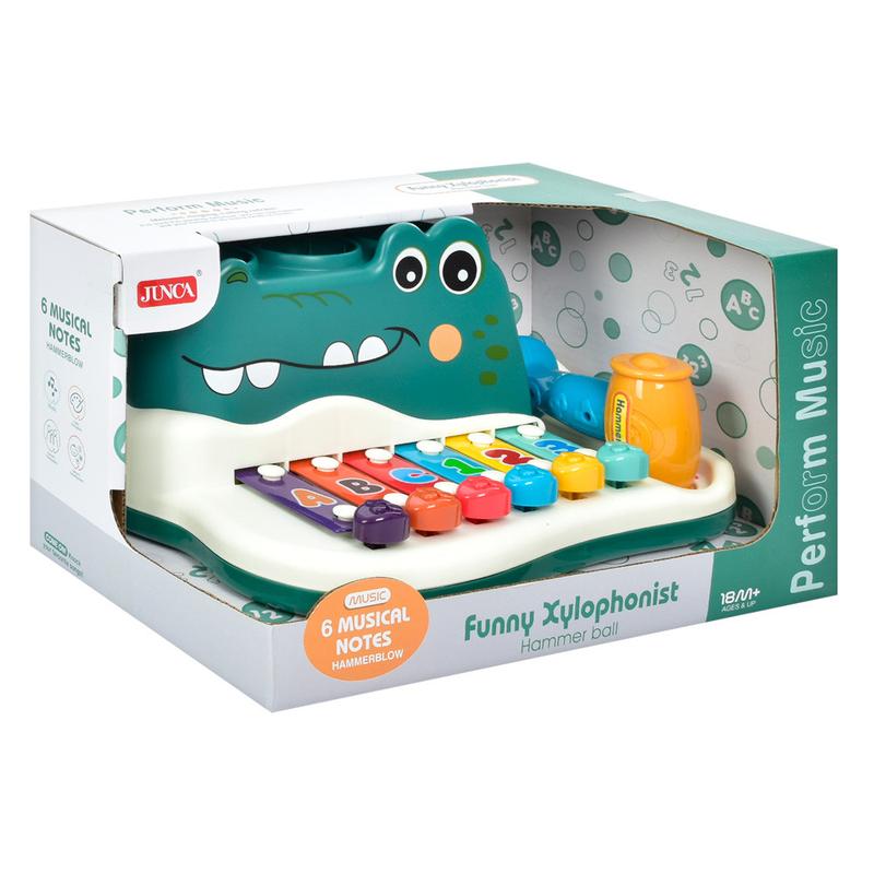 Ксилофон детский Junca Крокодил стучалка Funny Xylophonist. Веселый музыкальный инструмент "Funny Xylophonist" RJ 6807 поможет Вашему юному музыканту весело провести время и развить слух! Ксилофон имееь вид славного крокодила, который точно покорит внимание ребенка. Интересный Игровой функционал игрушки поможет малышу познакомиться с цифрами и буквами, будет развивать цветовое и звуковое восприятие, логическое мышление и сообразительность. Особенности: - милый современный дизайн музыкального инструмента; - имеет вид милого крокодила; - выполнен из приятного матового пластика; - игрушка представляет собой ксилофон в комплекте с молоточком и тремя разноцветными шариками; - 6 металлических тонов; - клавиши, активирующие приятное звучание ксилофона; - игра "стукачка", которая развивает ловкость и внимательность; - рифленый цветной молоточек. Комплектация: - ксилофон; - молоточек; - 3 шарика Внимание. Производитель оставляет за собой право изменять комплектацию, цветовую гамму и характеристики товара без предварительного уведомления. После оформления заказа мы свяжемся с Вами в течение 2-х часов и если у Вас возникнут вопросы, мы с радостью на них ответим.