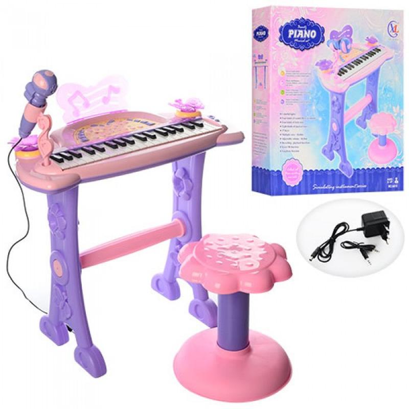 Детский синтезатор для девочек с микрофоном и стульчиком 6613,от сети