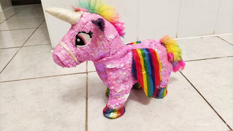 Единорог на батарейках с пайетками. Все работают так мало, что батарейки до сих пор не меняли. В идеальном состоянии, как новый. При необходимости могу сбросить видео. Ходит, играет музыка и трясет попой😊.
