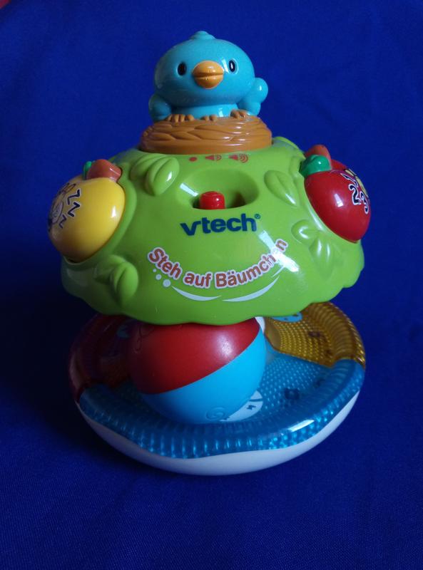 --Классная музыкальная игрушка фирмы Vtech в очень хорошем состоянии. На немецком языке. --Качественная. Прочная (не боится падений). Музыкальная. Звук регулируется (тихе-голоснее). --Земля под деревом разделена на три секции. Когда шар давит своим весом на какую-то из них, играет звук: Воды, Витру, Звон колокольчиков. --При нажатии на птичку сверху-девочка поет веселую песню. --Сбоку кнопка "Петрик"-счет на немецком 1-2-3. --Сбоку кнопка "Бчелка"-не работает. --Игрушка при отсутствии прикосновения к ней через минуту издает различные звуки, приглашая малыша поиграть еще. --Рекомендую для деток от 6 месяцев до 2-х лет. --Пришлю видео на Вайбер, убедитесь. Перешлю Укр, Новой поштами.