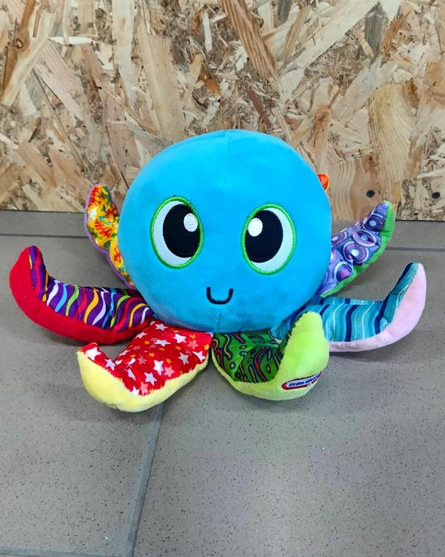 Музична іграшка Восьминіг 🐙. Виробник Little tikes. Стан новий, тільки без паперової Бірки. Кожен щупалець видає різний звук:дзвони. Писк. Папір, що шумить. Тремор. Звук стрибків. Приблизно 30 см в розмаху крил. Я можу надіслати відео восьминога та різних звуків, які він видає, коли дитина торкається щупальця.