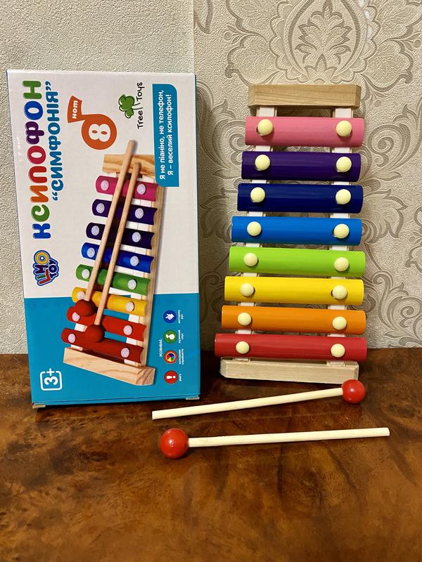 Дерев'яна іграшка Ксилофон . Яскравий музичний інструмент обов'язково сподобається Вашому малюку. На дерев'яній основі розташовані металеві різнокольорові пластини, по яким дитина зможе стукати спеціальними паличками, отримуючи дзвінкі звуки і створюючи свою унікальну мелодію. Характеристика : Тип: іграшка Вид: ксилофон Матеріал: дерево Кількість тонів: 8 Кількість паличок: 2 Розмір: 24 см Розмір упаковки: 24,5-13-3,5 см