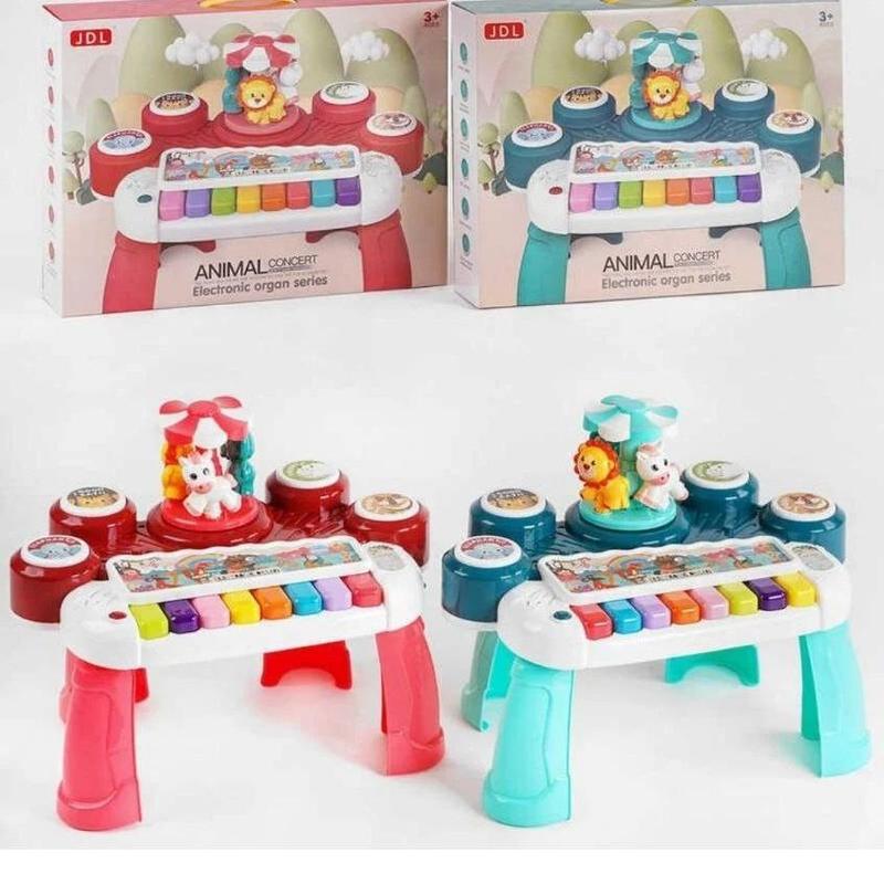Развивающий музыкальный центр Разработан специально для активных малышей, которые обожают интерактивные игрушки с отличными эффектами! Эта модель выполнена в виде компактного столика с множеством игровых элементов, которые помогут малышу проявить всю свою музыкальную творчество! Особенности: диско-слой с 3D-подсветкой; мерцающая подсветка кнопок; заводной механизм-карусель с милыми животными; круглая кнопка отвечает за несколько режимов и активирует на круглых кнопках и клавишах пианино: название животных и их звуки на английском языке; веселые детские песенки; игра на реакцию; звуки ударных инструментов; звучание клавиш пианино в разных тонах; мелодии. Пианино работает от 3 батареек типа "АА" — в комплект не входят. Размеры: 41.0 x 26.5 x 32.5