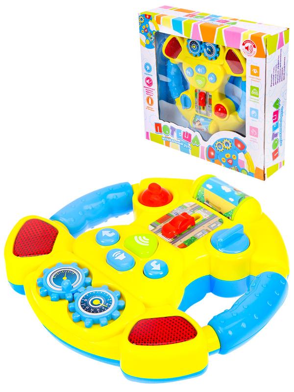 Детский музыкальный "Руль" потеша ( 2772 ) Игрушка обладает множеством функциональностей, которые привлекут внимание малыша. Игрушка обладает световыми и звуковыми эффектами, а также различными кнопочками, с помощью которых ребенок сможет воображать себя водителем или гонщиком, нажимая на яркие кнопочки. Игрушка очень полезна для развития логики и мышления, а также тактильных ощущений и сенсорных навыков. Характеристики: - Музыкальный руль из серии "Потеша" - Световы, звуковые Эффекты. - Детская песенка, стишок. - Работает от 2-Х батареек тип ААА (Не входят в комплект) - Материал: пластик - Для детей от 2х лет. - Размер: 20.5х5.4х20 - Язык: Русский